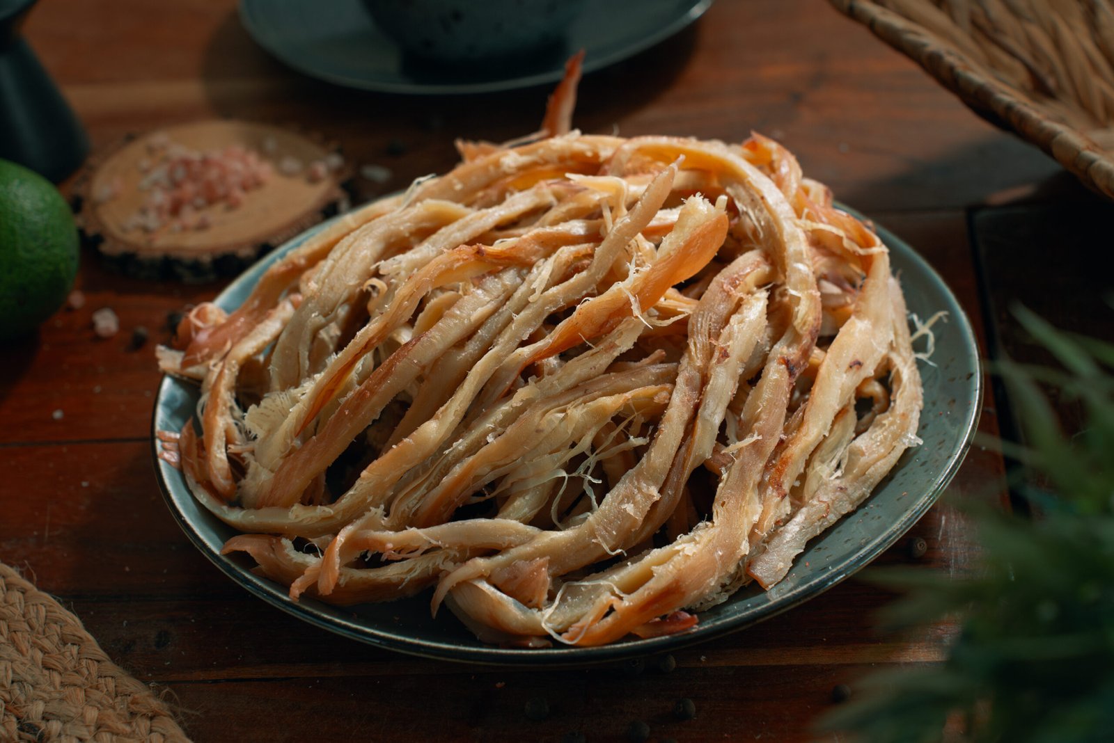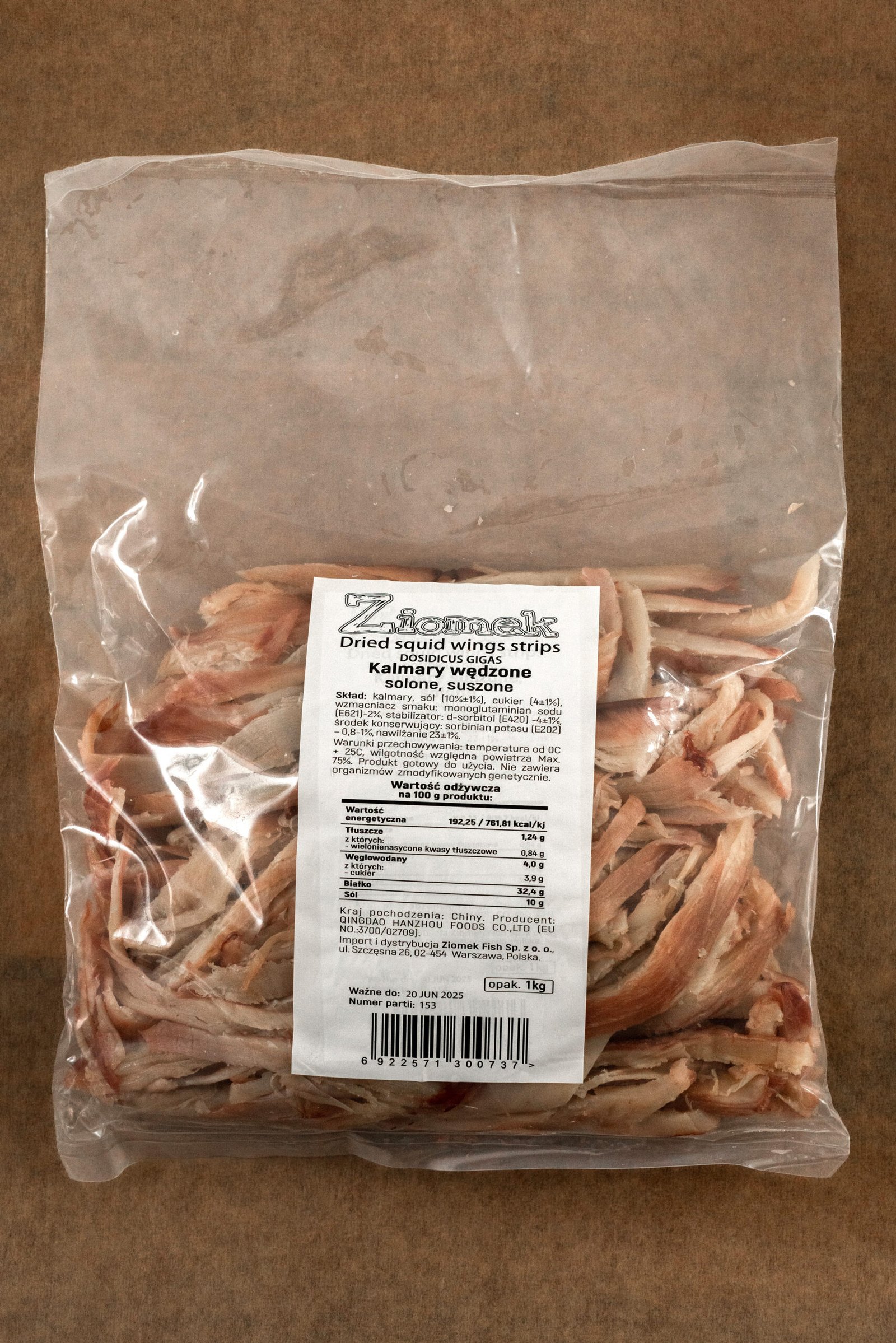 Kalmary, sól (10%±1%), cukier (4±1%), wzmacniacz smaku: monoglutaminian sodu (E621)-2%, stabilizator: d-sorbitol (E420) -4±1%, środek konserwujący: sorbinian potasu (E202) – 0,8-1%, nawilżanie23±1%.